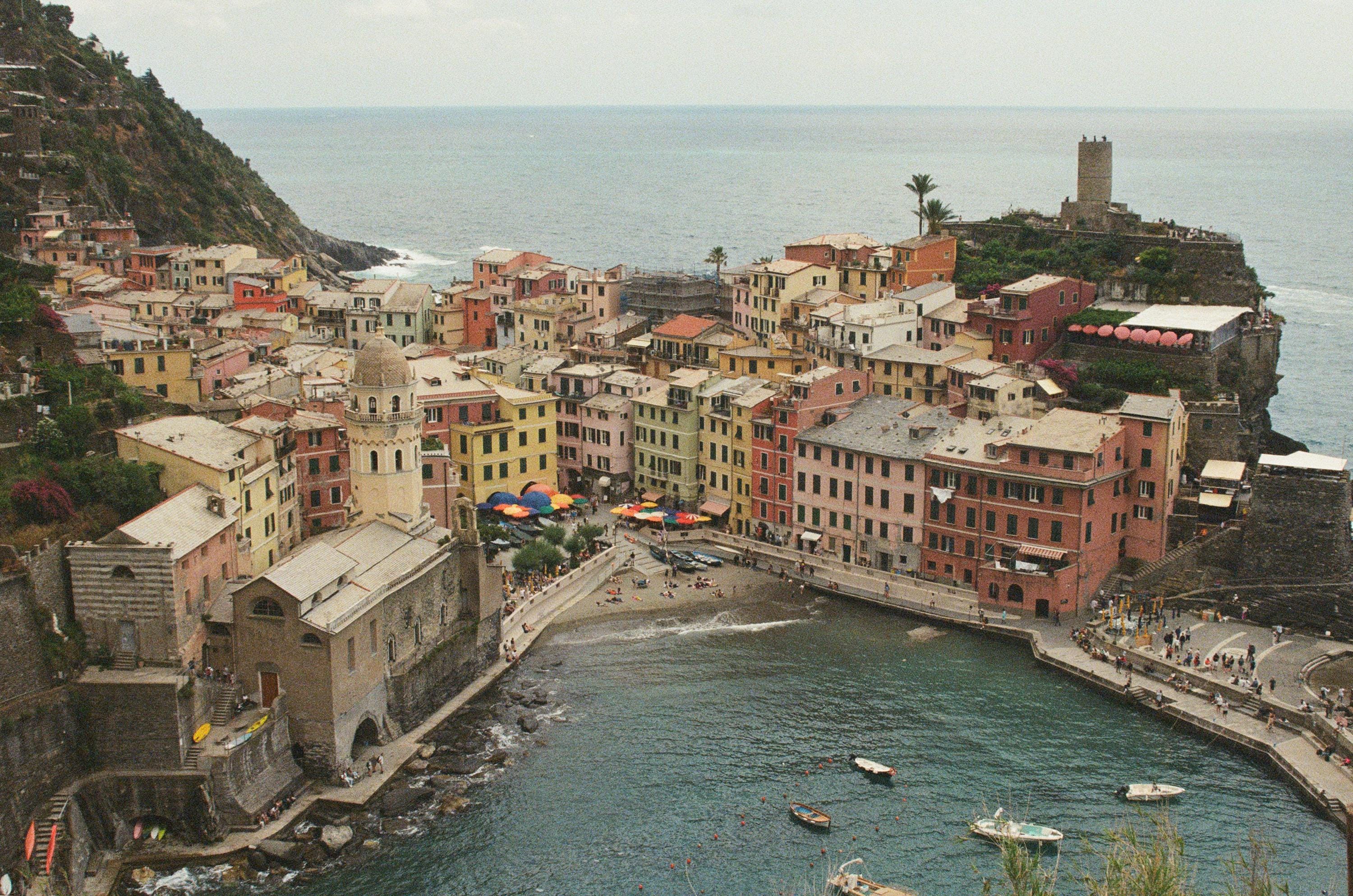 Film photograph of a breathtaking view during a treacherous hike in Monterosso, one of the 5 towns in Cinque Terre, Italy. This was such a magical day.
